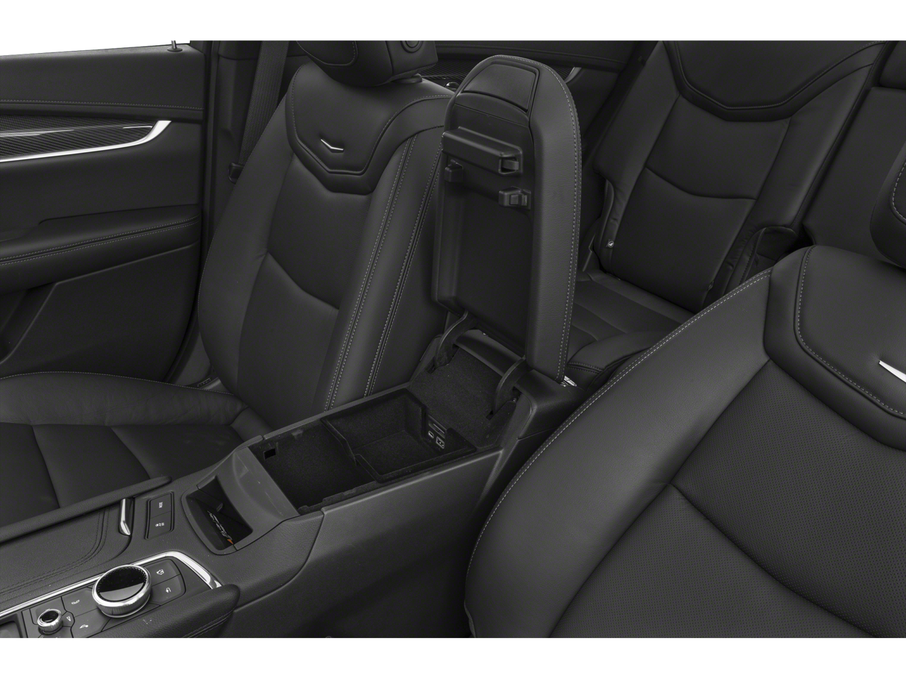 - Opens or closes when the system senses the key fob and the driver extends their foot under the left-hand side of the rear bumper over an image of the Cadillac Crest projected under the vehicle